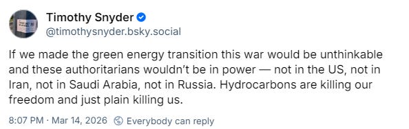 Here’s a good analysis from Bill McKibben on Iran, Venezuela, Cuba, Ukraine and China: